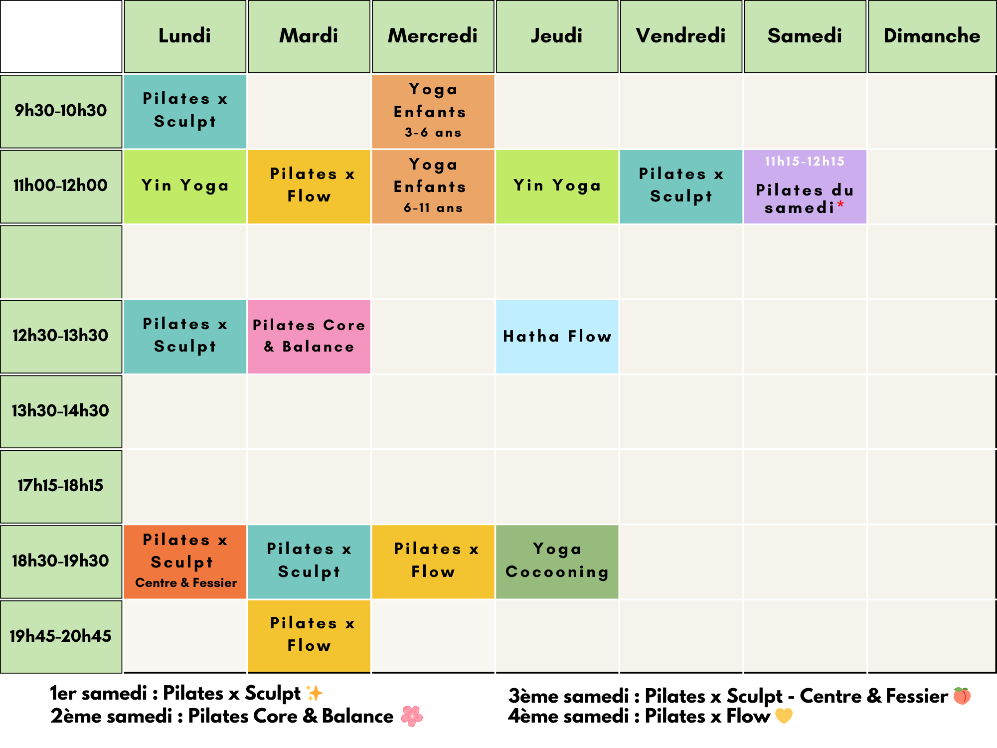 Consultez le planning Bloom Studio Vaux-sur-Mer pour rĂ©server vos cours de Pilates et Yoga. Choisissez lâhoraire qui vous convient et rejoignez-nous (Infos dans les onglets en haut de page)