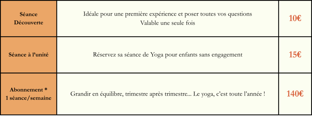 *Abonnement trimestriel, renouvelable. Séances dispensées en périodes scolaires uniquement. Possibilité de payer en 3 fois. Un cadeau vous sera offert pour toute souscription🌿